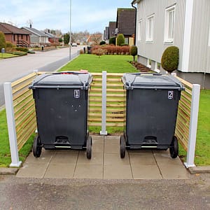 Skjul dine skraldespande med et affaldsskur! Vores skraldespandsskjule er et færdigt sæt af stolper med tilbehør, som derefter kombineres med trælægter. Du bygger dette affaldsskur på ingen tid og slipper for at se de kedelige skraldespande. Dette skjule til skraldespande findes i fire forskellige farver.