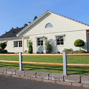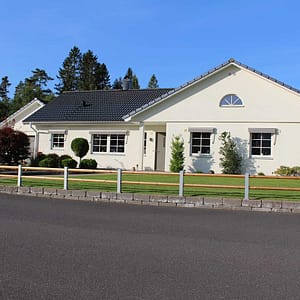 Altofta stolperne fås i tre forskellige højder, som kan kombineres med hinanden. Der er også fire forskellige typer stolper (mellemstolpe, hjørne 90 grader, slutstolpe og T-stolpe), hvilket giver dig mulighed for at bygge, som det passer dig. Stolperne kombineres med trælister på 45x45 mm, som du kan købe i en hvilken som helst byggemarked. Hegnet har drejede trælister, og den sparsomme afstand mellem listerne giver en luftig følelse.