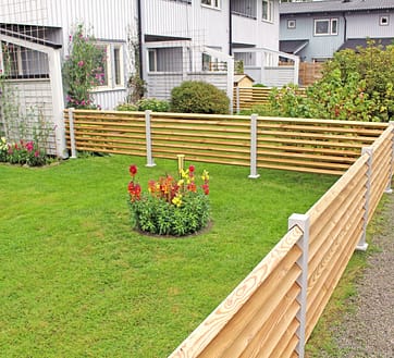 Du kombinerer Drömminge stolperne med 2-tommers (45x45 mm) trælister, som kan købes i enhver byggemarked. Trykimprægnerede trælister, laserede eller malede trælister, jernvitriol eller andre behandlinger - du vælger selv, hvordan dine trælister skal se ud, og derfor bliver hvert hegn unikt! Den vedligeholdelsesfrie struktur kombineret med trykimprægnerede trælister giver et vedligeholdelsesfrit hegn med lang levetid. Hullerne i Drömminge stolperne er drejet en kvart omgang, hvilket giver ekstra beskyttelse mod indsyn samt et unikt og karakteristisk udseende. Drömminge giver 75% privatlivs- og vindbeskyttelse.