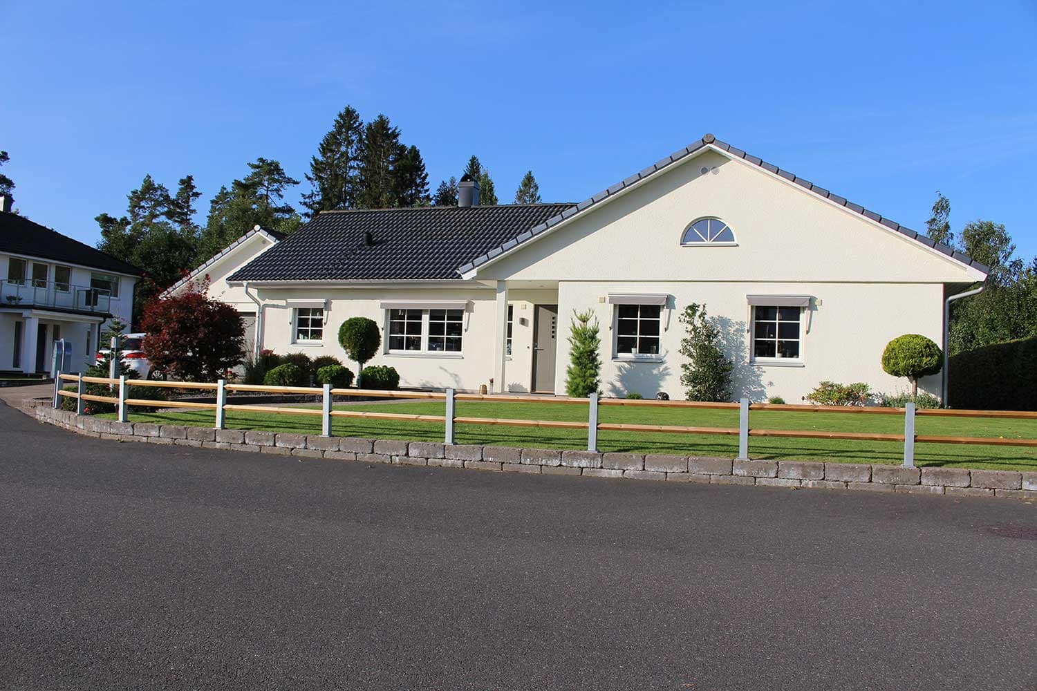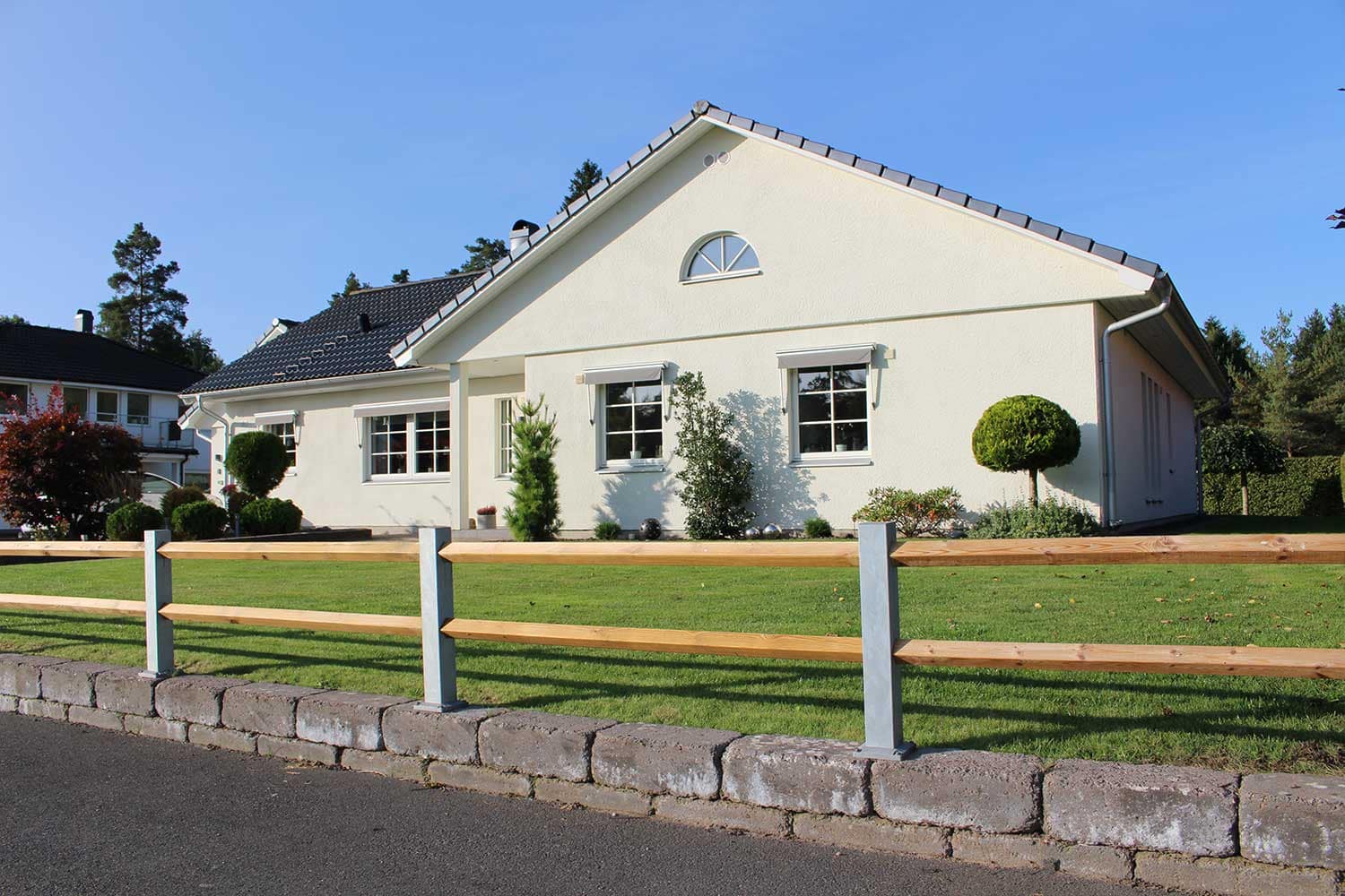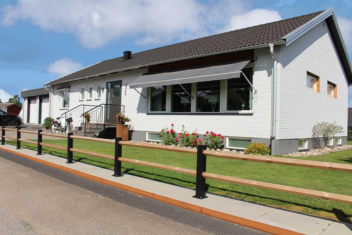 Altofta stolperne fås i tre forskellige højder, som kan kombineres med hinanden. Der er også fire forskellige typer stolper (mellemstolpe, hjørne 90 grader, slutstolpe og T-stolpe), hvilket giver dig mulighed for at bygge, som det passer dig. Stolperne kombineres med trælister på 45x45 mm, som du kan købe i en hvilken som helst byggemarked. Hegnet har drejede trælister, og den sparsomme afstand mellem listerne giver en luftig følelse.