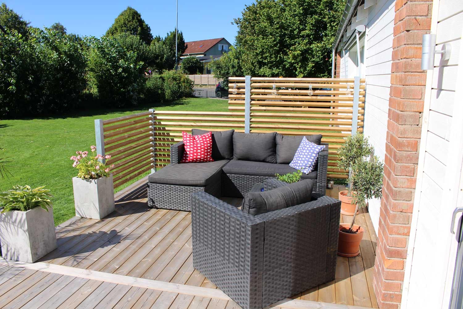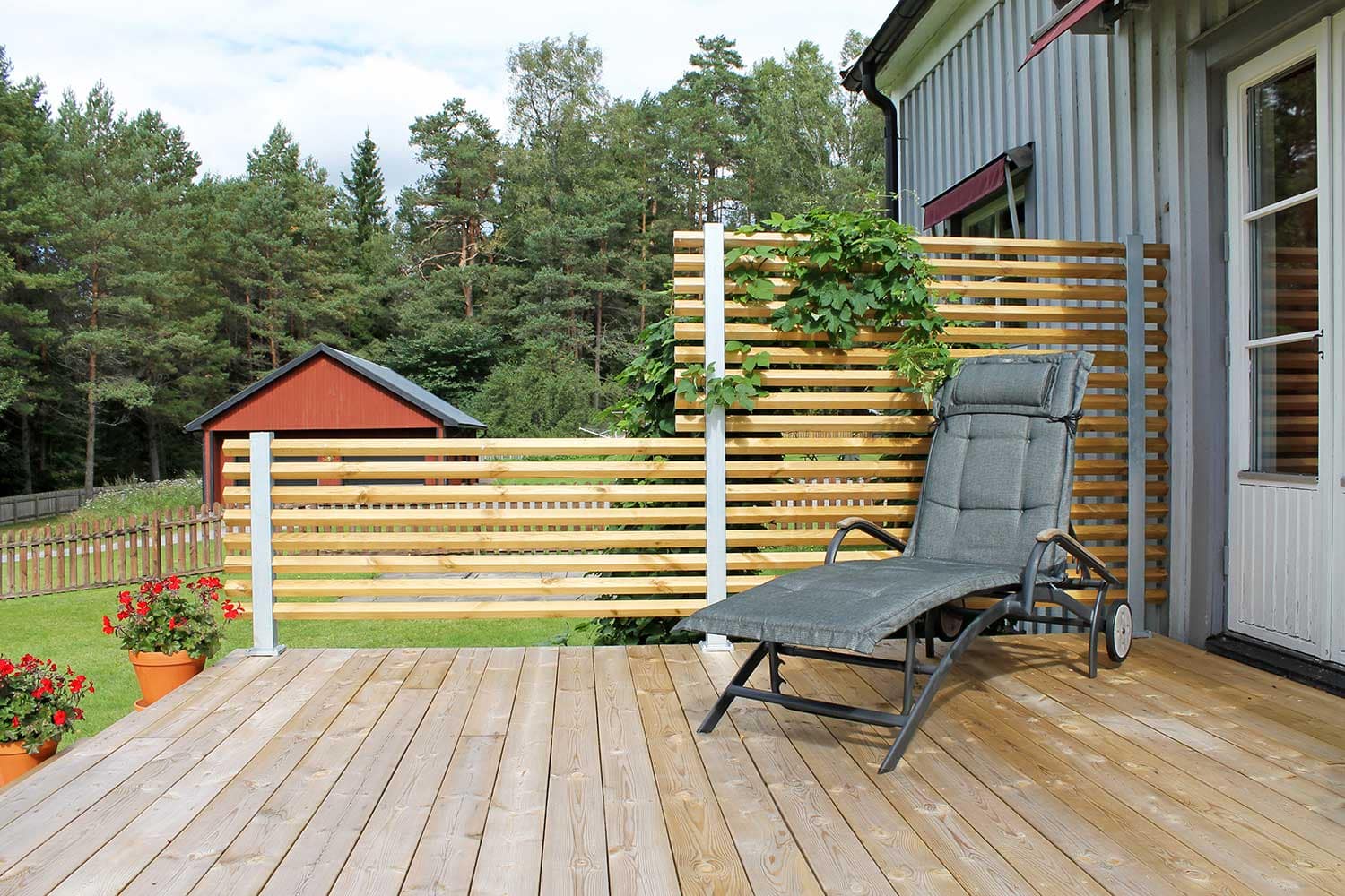 Du kombinerer Drömminge stolperne med 2-tommers (45x45 mm) trælister, som kan købes i enhver byggemarked. Trykimprægnerede trælister, laserede eller malede trælister, jernvitriol eller andre behandlinger - du vælger selv, hvordan dine trælister skal se ud, og derfor bliver hvert hegn unikt! Den vedligeholdelsesfrie struktur kombineret med trykimprægnerede trælister giver et vedligeholdelsesfrit hegn med lang levetid. Hullerne i Drömminge stolperne er drejet en kvart omgang, hvilket giver ekstra beskyttelse mod indsyn samt et unikt og karakteristisk udseende. Drömminge giver 75% privatlivs- og vindbeskyttelse.