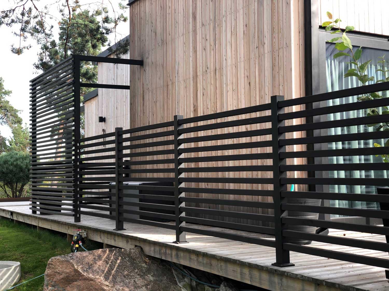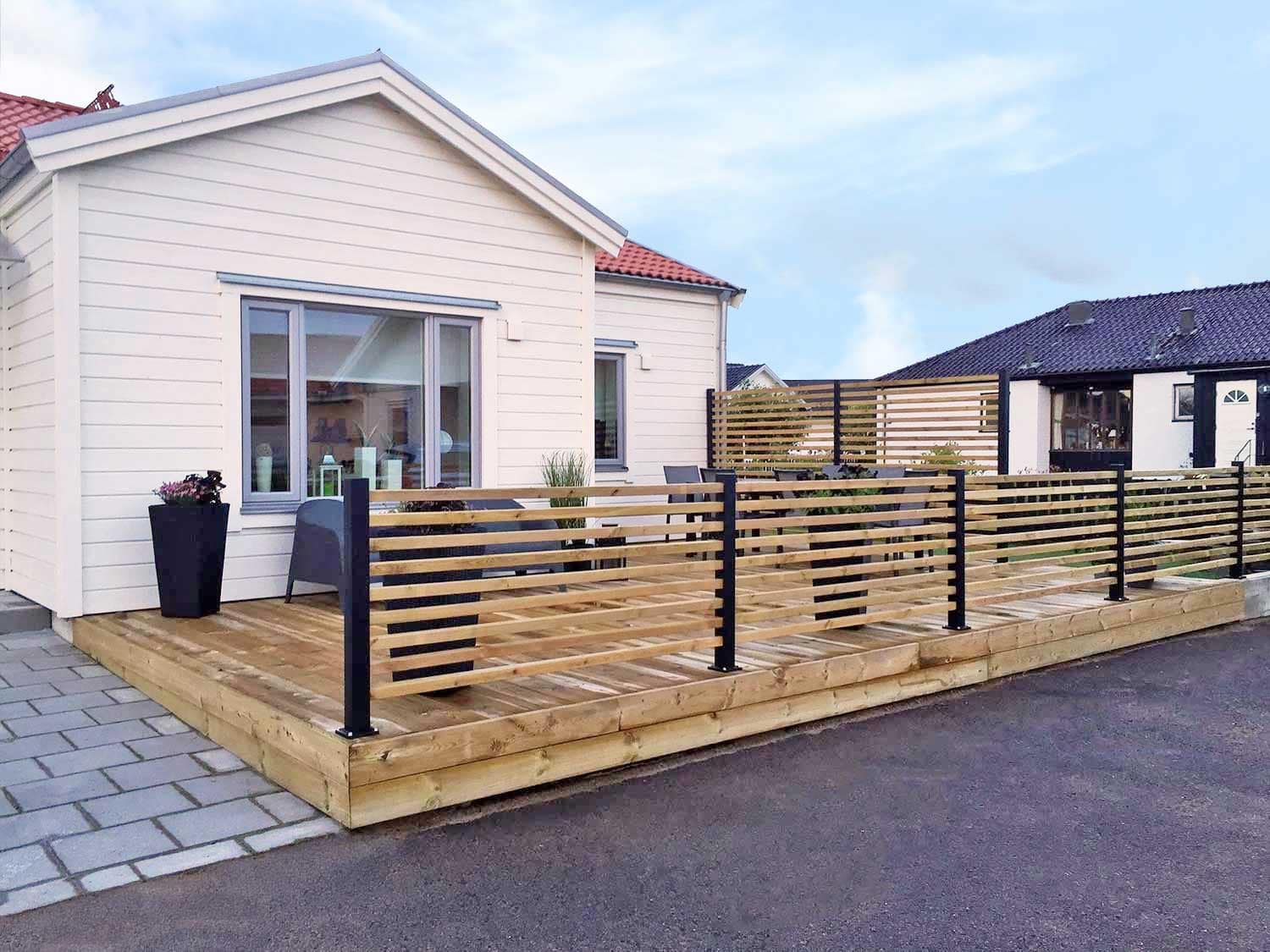 Nydala-stolpen kombineres med 2-tommers (45x45 mm) trælister, som er standard i byggemarkeder. Trykimprægnerede trælister, laserede eller malede trælister, jernvitriol eller andre behandlinger - du vælger selv, hvordan dine trælister skal se ud, og derfor bliver hvert hegn unikt! Den vedligeholdelsesfrie struktur kombineret med trykimprægnerede trælister giver et vedligeholdelsesfrit hegn med lang levetid. Nydala giver 50% vind- og privatlivsbeskyttelse.