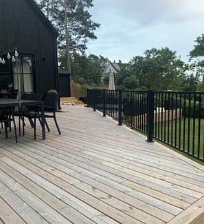 Herrestad er et enkelt, men elegant hegn med lodrette ribber. Da det ikke er klatrevenligt, fungerer det særlig godt som poolhegn, men det kan selvfølgelig også bruges som havehegn eller altanrækværk.