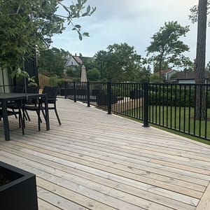 Herrestad er et enkelt, men elegant hegn med lodrette ribber. Da det ikke er klatrevenligt, fungerer det særlig godt som poolhegn, men det kan selvfølgelig også bruges som havehegn eller altanrækværk.