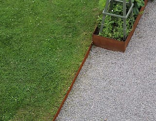 Giv din bedkant et pænt udseende med hjælp fra bedkanter. En have omfavnet af bedkanter i lige eller afrundede former giver ofte et harmonisk indtryk. Med bedkanter adskiller du let forskellige materialer og undgår græs, der vokser ind i bedet – med andre ord både praktisk og flot! Vores høje bedkant er 18 cm høj og har en blødere kant foroven, for at forhindre, at nogen kan komme til skade. Dette er en kant, der er enkel og smidig at arbejde med, og den findes i farverne galvaniseret, sort og corten.