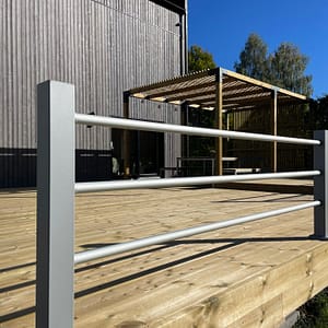 Med lige og stramme linjer bidrager Lerdala med en moderne design, der ikke forringer udsigten. Perfekt, når du blot ønsker en enkel, men stilfuld indramning af din have eller terrasse! Med sølvgrå stolper og liggende aluminiumsrør bliver Lerdala et hegn eller gelænder helt uden vedligeholdelse. Denne model vælges ofte i stedet for en glasrækværk på terrasser, hvor udsigten er vigtig, mens det vedligeholdelsesfrie også er højt prioriteret.