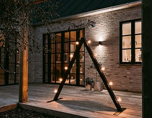 Monteringen er meget enkel, og ingen ledninger fra den medfølgende lyskæde bliver synlige. Lyskæden er dæmpbar og har LED-pærer, som kan udskiftes. Når sæsonen er ovre, kan Ljuseveka nemt klappes sammen og opbevares i den medfølgende kasse.