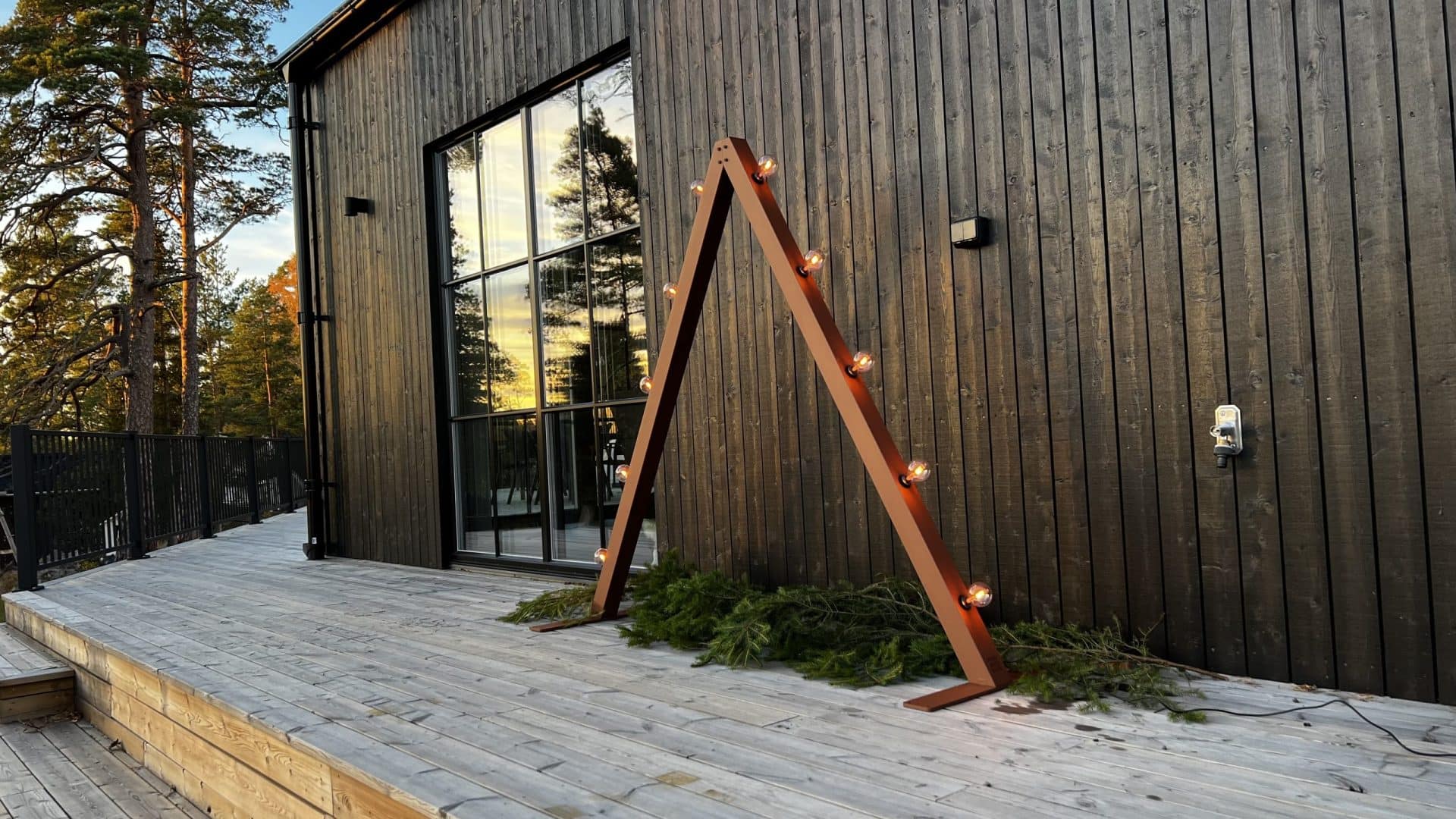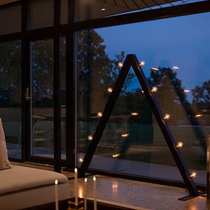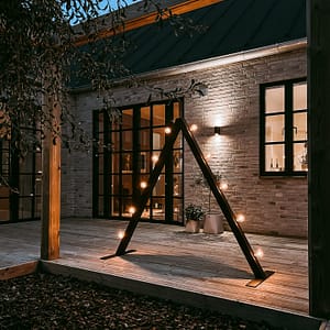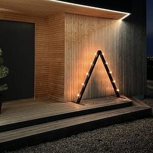 Monteringen er meget enkel, og ingen ledninger fra den medfølgende lyskæde bliver synlige. Lyskæden er dæmpbar og har LED-pærer, som kan udskiftes. Når sæsonen er ovre, kan Ljuseveka nemt klappes sammen og opbevares i den medfølgende kasse.