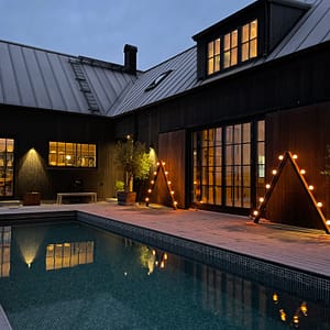 Ljuseveka er fremstillet af galvaniseret stål og er lakeret med sort vejrbestandig udendørslack. De tunge fodplader gør, at lysestagen står stabilt, men der er også huller i fodpladen, hvis der ønskes fastskruvning eller yderligere forankring.
