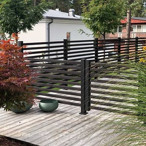Nydala-stolpen kombineres med 2-tommers (45x45 mm) trælister, som er standard i byggemarkeder. Trykimprægnerede trælister, laserede eller malede trælister, jernvitriol eller andre behandlinger - du vælger selv, hvordan dine trælister skal se ud, og derfor bliver hvert hegn unikt! Den vedligeholdelsesfrie struktur kombineret med trykimprægnerede trælister giver et vedligeholdelsesfrit hegn med lang levetid. Nydala giver 50% vind- og privatlivsbeskyttelse.