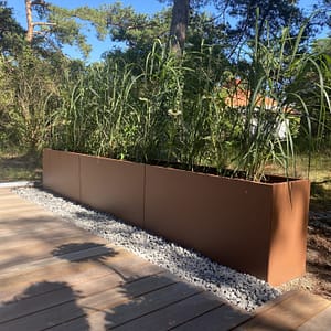 - Cortenlak – en lak, der ligner cortenplade. Den store fordel ved cortenlak i forhold til almindelig cortenplade er, at du ikke behøver at bekymre dig om rustpletter, som let kan misfarve underlaget. Desuden er boksen allerede "færdigrustet", når du får den! Perfekt også for dem, der ønsker at placere corten indendørs.