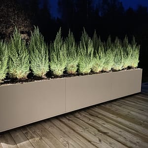 Vores højt elskede serie Plant Box fremstilles i Småland og har et stilrent og slankt design, der passer til de fleste omgivelser. Boksene af høj kvalitet har ingen synlige skruer, hvilket giver flotte samlinger og rene linjer. Den dobbeltbukkede kant øverst giver boksen en elegant afslutning og gør boksen ekstra stabil. Disse plantekasser bruges som afskærmning, rumdelere eller som et statement med smukke planter både i private og offentlige miljøer. Plantekasserne kan bruges både udendørs og indendørs. Placerer du dem udendørs, kan de stå ude hele året, da de ikke tager skade af kulden.