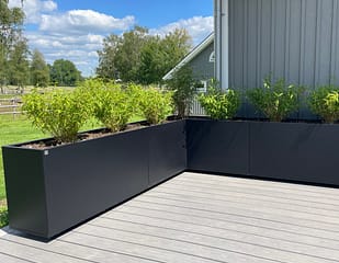 Vores højt elskede serie Plant Box fremstilles i Småland og har et stilrent og slankt design, der passer til de fleste omgivelser. Boksene af høj kvalitet har ingen synlige skruer, hvilket giver flotte samlinger og rene linjer. Den dobbeltbukkede kant øverst giver boksen en elegant afslutning og gør boksen ekstra stabil. Disse plantekasser bruges som afskærmning, rumdelere eller som et statement med smukke planter både i private og offentlige miljøer. Plantekasserne kan bruges både udendørs og indendørs. Placerer du dem udendørs, kan de stå ude hele året, da de ikke tager skade af kulden.