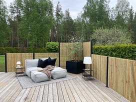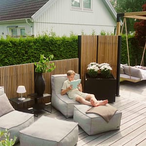 Borgen er en trendy og populær ribbestakit, der kombinerer metalstolper med lodrette trælister på 28×45 mm. Den stilfulde og moderne ribbevæg har profiler med færdige mål, der ikke kræver tidskrævende målinger, hvilket gør det nemt og hurtigt at montere den uden forudgående erfaring. Borgen giver meget privatliv uden at være en hel plankevæg, og det flotte design bliver som en indretningsdetalje i haven eller på terrassen. Ribbestakit Borgen kan bruges som hegn, afskærmning og gelænder og er også en perfekt løsning som skillevæg mellem terrasser i flerfamilieboliger.