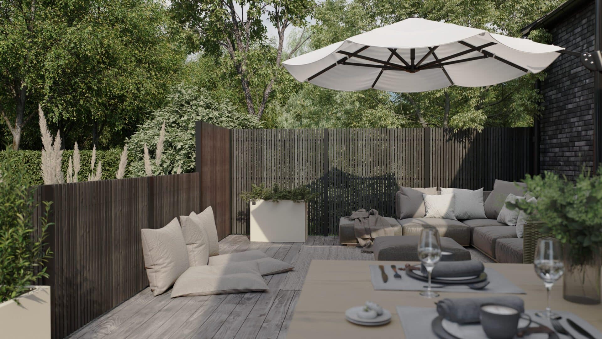 Borgen er en trendy og populær ribbestakit, der kombinerer sorte metalstolper med lodrette trælister på 28×45 mm. Den stilfulde og moderne ribbevæg har profiler med færdige mål, der ikke kræver tidskrævende målinger, hvilket gør det nemt og hurtigt at montere den uden forudgående erfaring. Borgen giver meget privatliv uden at være en hel plankevæg, og det flotte design bliver som en indretningsdetalje i haven eller på terrassen. Ribbestakit Borgen kan bruges som hegn, afskærmning og gelænder og er også en perfekt løsning som skillevæg mellem terrasser i flerfamilieboliger.