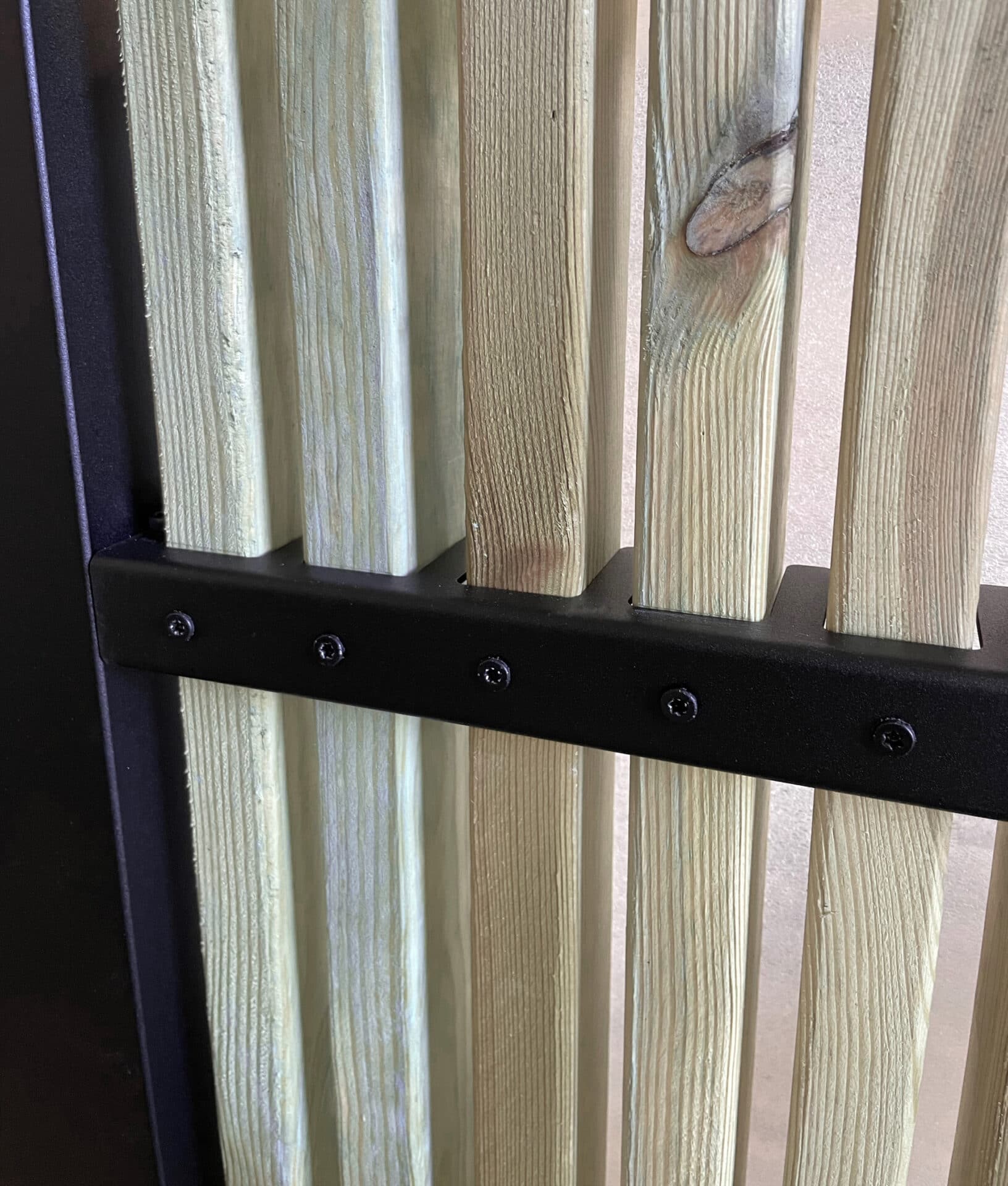 Profilerne fastgøres mellem stolperne og kombineres med trælameller 28×45 mm. Den 91 cm lange profil har plads til 22 lameller, og den 148 cm lange profil har plads til 36 lameller. Afstanden mellem trælisterne er 1,3 cm, og de skrues fast med skruer gennem bagsiden af profilen. Profilerne er lavet af galvaniseret plade og er lakeret med pulverlak til udendørs brug. Profilerne leveres med skruer til at fastgøre trælisterne samt skruer til at fastgøre profilen til stolpen. Profilerne fås i pakker med 2 eller 3 stk. Til højden 175 cm bruges tre profiler, og til højden 142 cm og 110 cm bruges to profiler. Hvis du ønsker kortere afstand mellem stolperne, kan profilerne skæres til den ønskede længde. Derefter fastgøres de i stolpen ved hjælp af en beslag til skårede profiler. …..