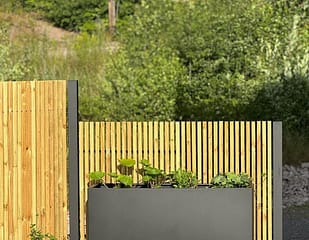 Borgen er en trendy og populær ribbestakit, der kombinerer metalstolper med lodrette trælister på 28×45 mm. Den stilfulde og moderne ribbevæg har profiler med færdige mål, der ikke kræver tidskrævende målinger, hvilket gør det nemt og hurtigt at montere den uden forudgående erfaring. Borgen giver meget privatliv uden at være en hel plankevæg, og det flotte design bliver som en indretningsdetalje i haven eller på terrassen. Ribbestakit Borgen kan bruges som hegn, afskærmning og gelænder og er også en perfekt løsning som skillevæg mellem terrasser i flerfamilieboliger.