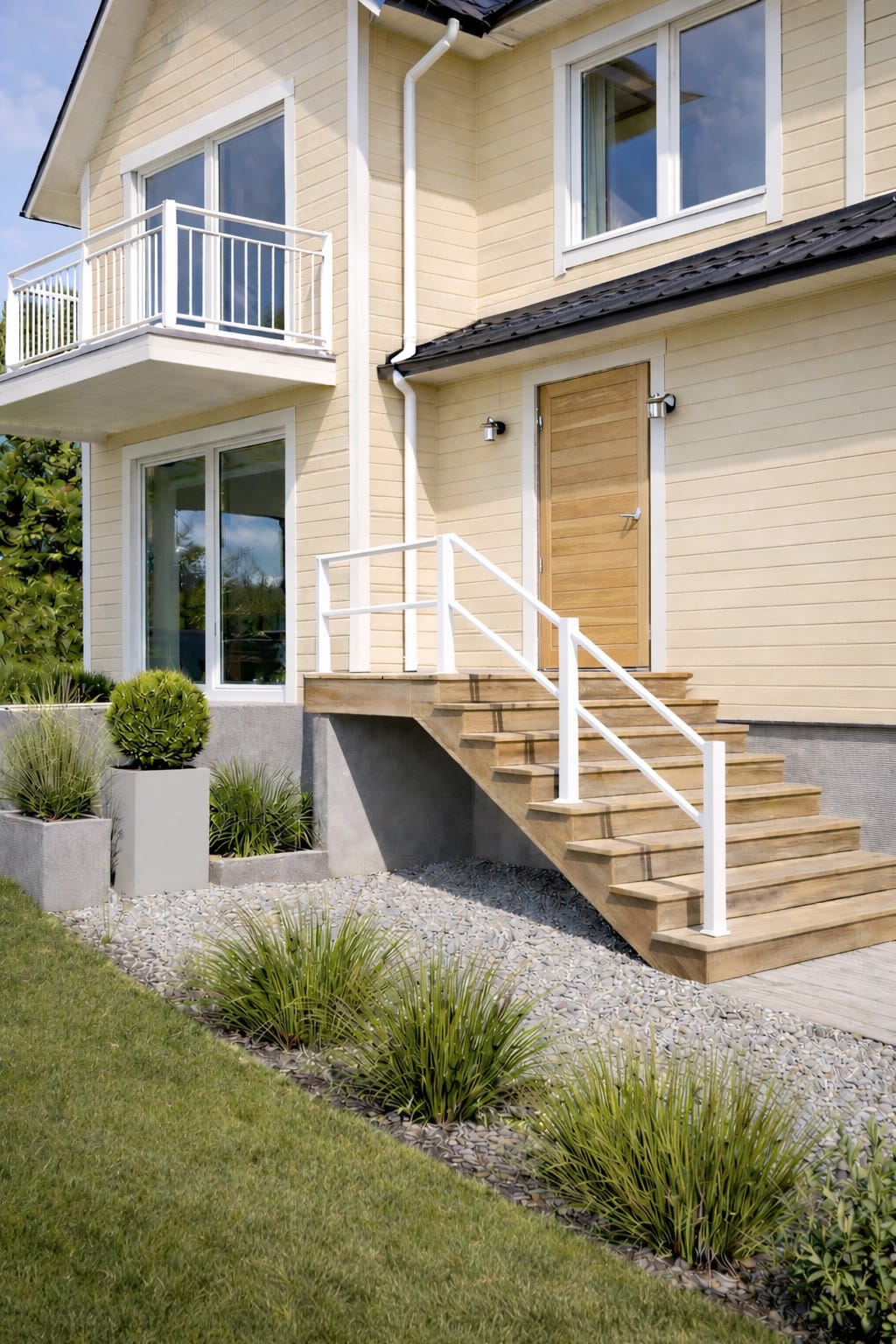 Et trappegelænder i aluminium og galvaniserede stålrør er et fremragende valg til udendørs brug. I modsætning til trappegelændere i træ kræver Karlsdal minimalt vedligehold og bevarer både funktion og udseende i lang tid.