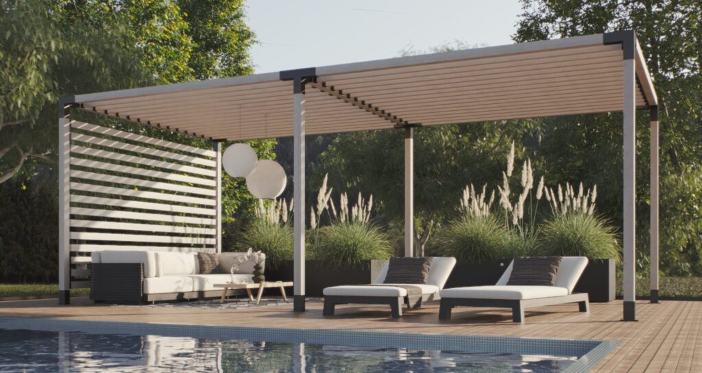 Pergola Flex er et fleksibelt pergolasystem, hvor dine behov bestemmer! Systemet består af slanke beslag, som du supplerer med valgfrit tømmer 95x95mm. På den måde kan du let tilpasse pergolaen efter de mål, du har derhjemme. Disse modeller monteres fritstående.